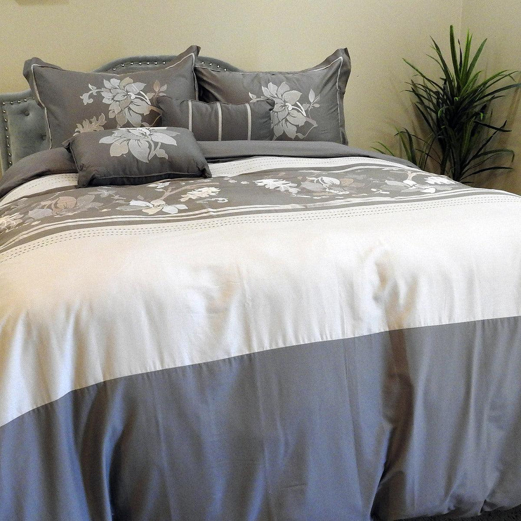 Full/Queen 5 Piece Duvet Set Includes: One Duvet Cover 90 inches wide x 92 inches long, Two Standard Shams 20 inches wide x 26 inches long each & Two Decorative Pillows 12 inches wide x 18 inches long each.